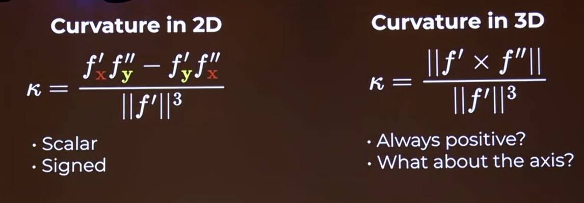 \[\kappa = \frac{f^{\prime}\wedge f^{\prime\prime}}{\left\|f^\prime\right\|^3}\]