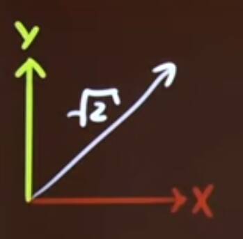 It's length is \(\left\|\mathbf{x}+\mathbf{y}\right\|=\sqrt{2}\). But then we can square it, using \(\mathbf{v}^2=\left\|\mathbf{v}\right\|^2\), \[ \begin{align*} (\mathbf{x}+\mathbf{y})^2 &= \mathbf{x}\mathbf{x} + \mathbf{x}\mathbf{y} + \mathbf{y}\mathbf{x} + \mathbf{y}\mathbf{y} \\ &= 1 + \mathbf{x}\mathbf{y} + \mathbf{y}\mathbf{x} + 1 = 2 \end{align*} \] and so \[ \mathbf{x}\mathbf{y} + \mathbf{y}\mathbf{x} = 0 \] or \[ \mathbf{x}\mathbf{y} = -\mathbf{y}\mathbf{x} \] So we get