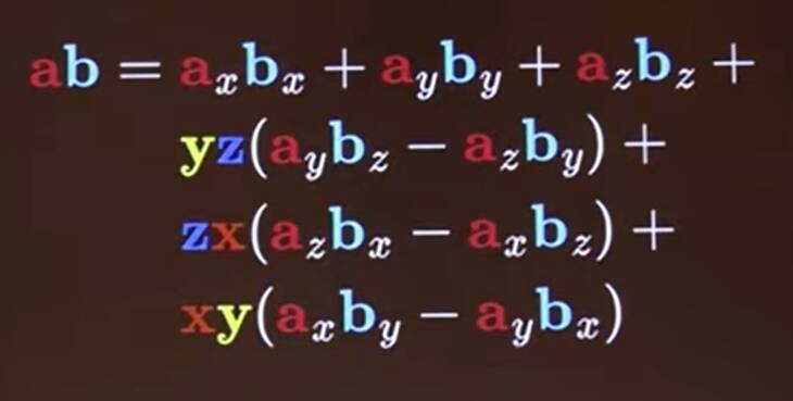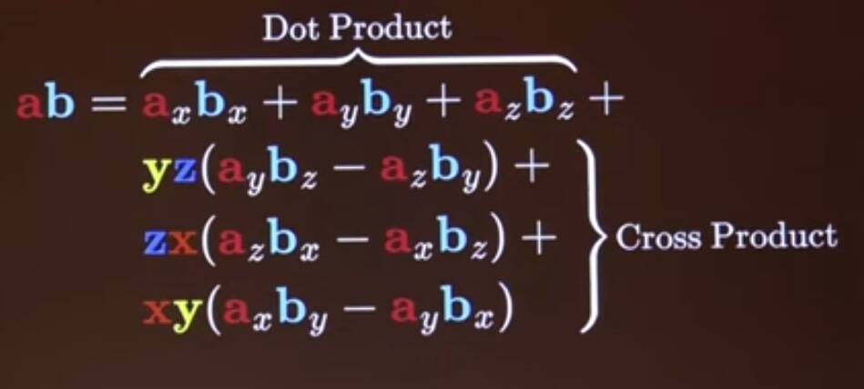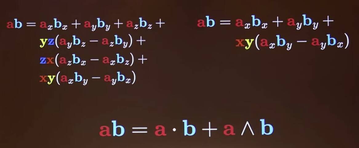 \[\mathbf{ab} = a_xb_x + a_yb_y + \mathbf{xy}(a_xb_y - a_yb_x)\]