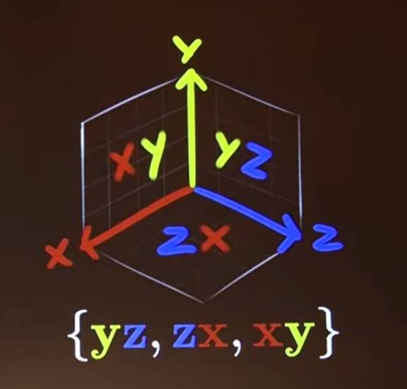 It is specified by three components, e.g. \((0.1,0.2,0.3)\), like a vector, but algebraically behaves differently since it is has a basis of \(\{\mathbf{xy},\mathbf{yz},\mathbf{zx}\}\).