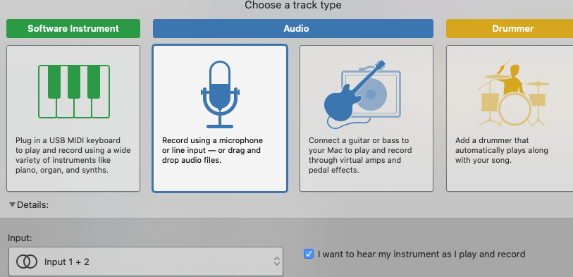 Record using a microphone. Set input to 1 and 2 (or some other pair)
